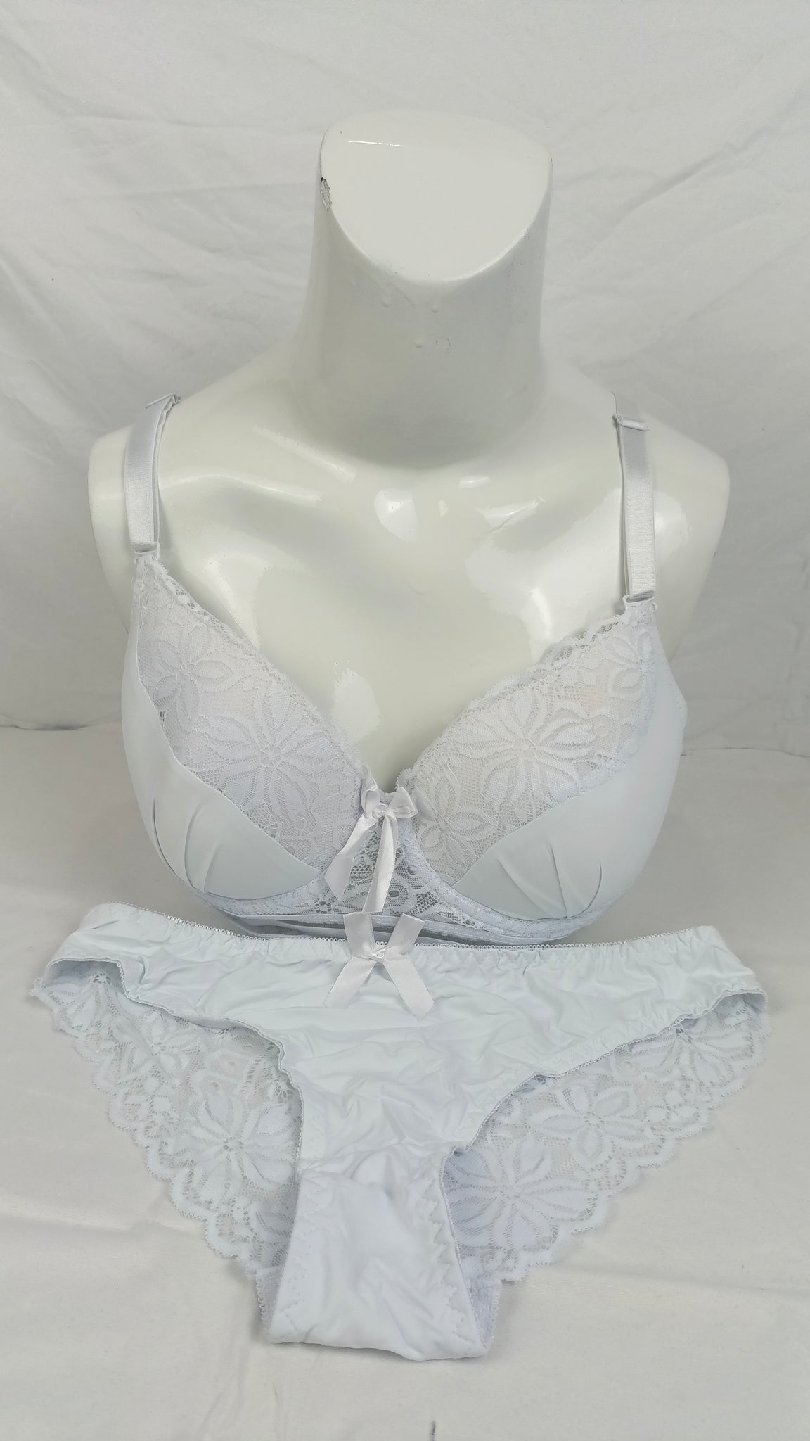 Stylish Light Bluish Whaite Single Padded Bra With Matching Panty