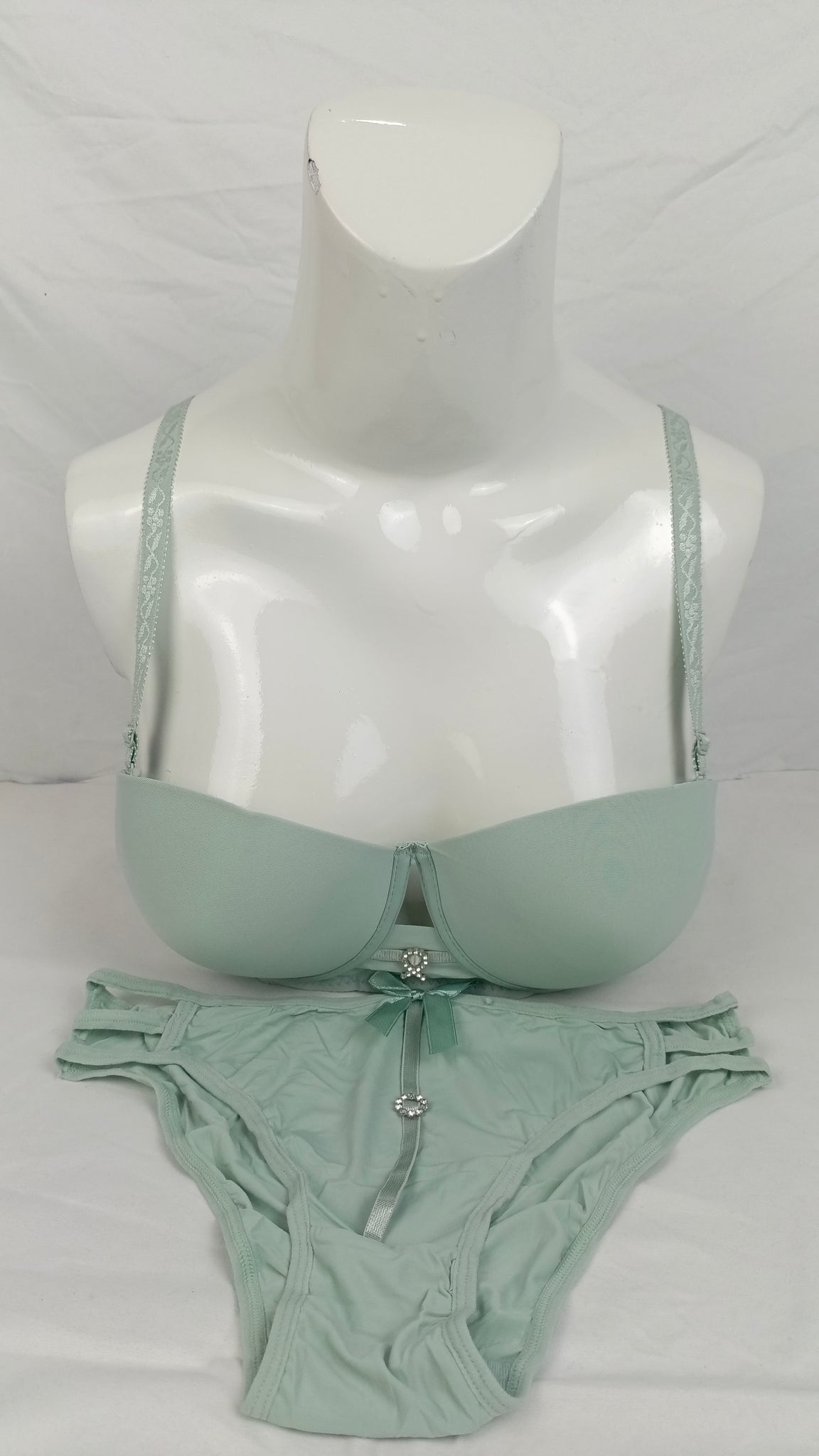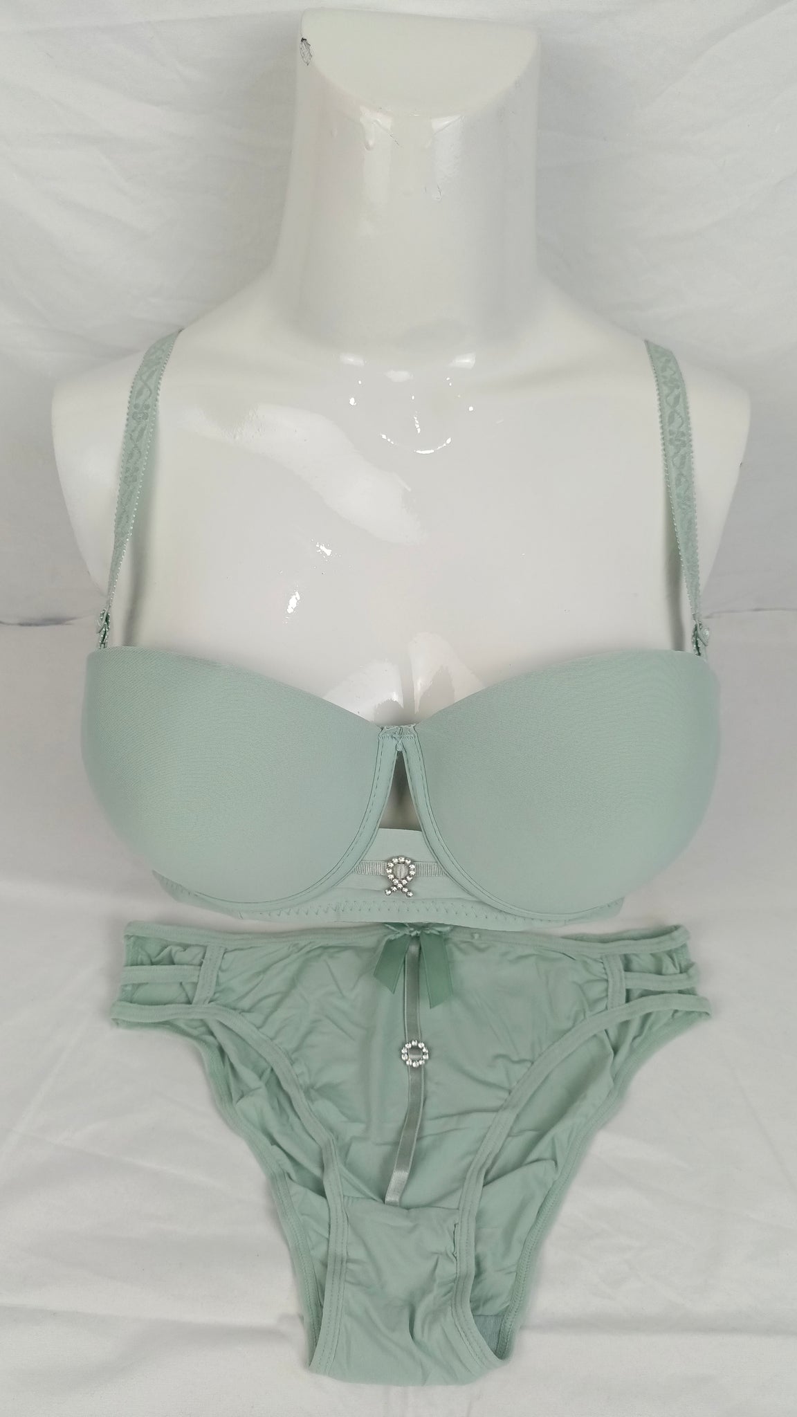 Stylish Mint Green Double Padded Bra With Matching Panty
